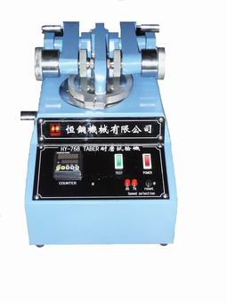 說明:本機適用于布、紙、涂料、合板、皮革、地磚、玻璃、天然橡膠等。試法為回轉(zhuǎn)之試料頂著一對磨耗輪,并加以規(guī)定之負荷,試料旋轉(zhuǎn)時帶動磨耗輪藉以磨耗試料,磨耗損失重量為試驗前后試料之重量差。參考JIS、ASTM等測試規(guī)范